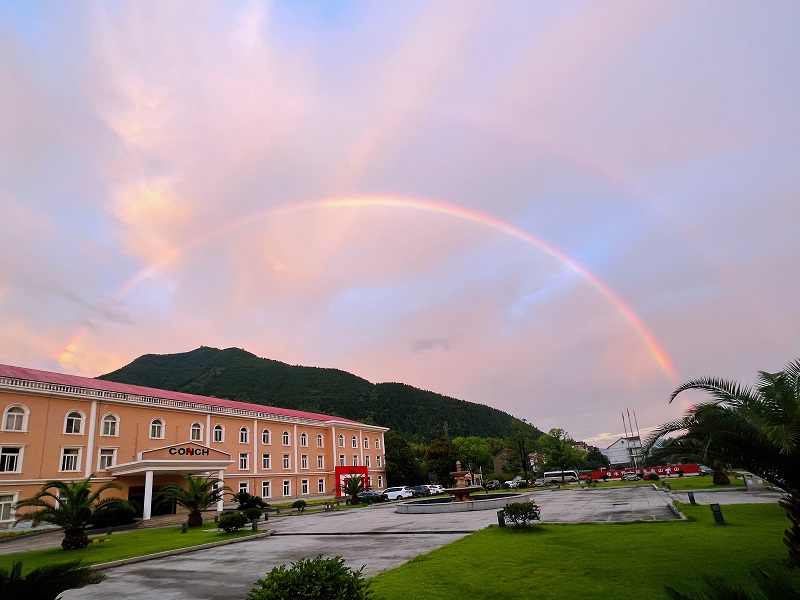 赤橙黃綠青藍紫,誰持彩練當空舞?雨后復斜陽,關(guān)山陣陣蒼……古往今來,描寫彩虹的詩詞有很多,而毛澤東的這首《菩薩蠻·大柏地》則以歡快的筆調(diào),描繪了一幅色彩斑斕的大柏地雨后的壯麗景色,抒發(fā)了作者的革命豪情。在海螺看到美麗彩虹,您會發(fā)出怎樣的感慨呢?