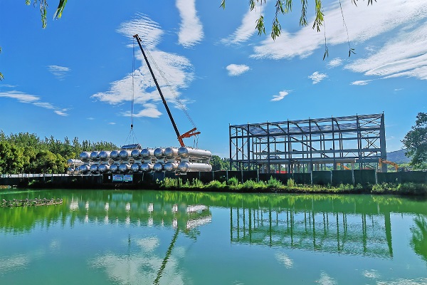 來到海螺水泥沿江千萬噸級(jí)水泥熟料生產(chǎn)基地——蕪湖海螺,一座正在緊張建設(shè)中的二氧化碳儲(chǔ)能項(xiàng)目映入眼簾,這是蕪湖海螺10MW/80MWh新型二氧化碳儲(chǔ)能示范項(xiàng)目。