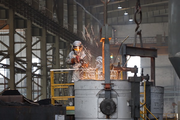 8月17日清晨,海川裝備公司180輥壓機(jī)軸承座澆注生產(chǎn)作業(yè)正在緊張有序地進(jìn)行中,為了保證這個(gè)重達(dá)近10噸的“大家伙”最終的澆注質(zhì)量,鑄造分廠澆注工程國強(qiáng)正在和工友們進(jìn)行著最后的測溫工作,厚重的鋁箔防火隔熱服內(nèi),汗水順著皮膚不斷滑落,而他們依舊全神貫注,他說:“鋼包測溫是澆注工序的最后一項(xiàng)重要工作,必須保證每個(gè)動(dòng)作規(guī)范到位,心靜自然涼,專注在手上,也就感覺不到熱了?!保▍雾嵶?攝)