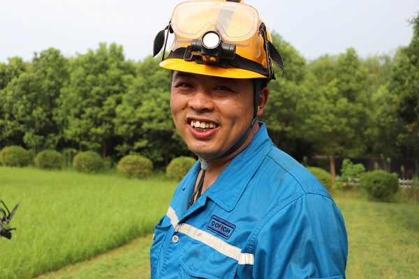 正在前往一線喂料樓的章利,勞保服已被汗水所浸透,干濕分明,手套、安全帽、勞保服在保障員工安全的同時(shí),也見證著海螺人默默的付出。(龍新陽/攝)