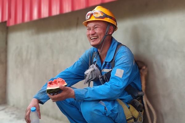 搶進(jìn)度、穩(wěn)運(yùn)行、抓生產(chǎn),這群可愛可敬的身影穿梭于生產(chǎn)一線,陽光照耀下,他們面龐上的汗水愈發(fā)顯得晶瑩。一心抓安全生產(chǎn)的他們,也同樣需要得到保護(hù),從西瓜、冰鎮(zhèn)綠豆湯、酸梅湯,到仁丹、十滴水,鏡頭下,接過防暑降溫品的他們,露出了質(zhì)樸真誠的笑容,這就是夏日里海螺水泥一線員工群像。
