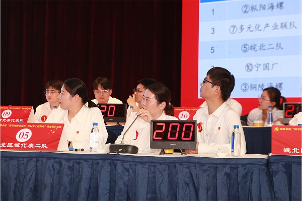 思想之光照耀奮進(jìn)路,時(shí)代偉力領(lǐng)航新征程。為進(jìn)一步檢驗(yàn)各基層黨組織主題教育工作成效,把學(xué)習(xí)貫徹習(xí)近平新時(shí)代中國(guó)特色社會(huì)主義思想和黨的二十大精神引向深入,9月27日下午,海螺水泥舉辦了“深學(xué)細(xì)悟強(qiáng)黨性 篤行實(shí)干建新功”黨建知識(shí)競(jìng)賽,喜迎新中國(guó)成立74周年。共有寧國(guó)水泥廠代表隊(duì)、樅陽(yáng)海螺代表隊(duì)、省內(nèi)多元化產(chǎn)業(yè)聯(lián)隊(duì)等10支代表隊(duì)參加比賽,相關(guān)單位負(fù)責(zé)人和員工代表200多人現(xiàn)場(chǎng)觀賽。公司領(lǐng)導(dǎo)劉田田同志作了動(dòng)員講話。