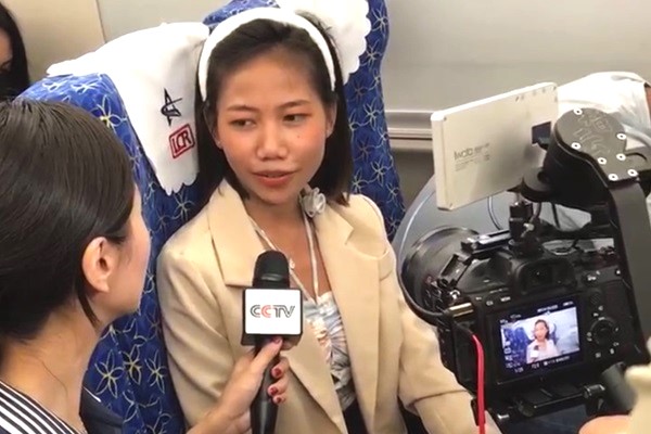 烏灑尼乘坐動車時接受中央電視臺的采訪