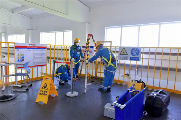 安全競技項目比賽中,選手們?nèi)褙炞?,把?yán)謹(jǐn)和細(xì)致貫穿到清倉清堵作業(yè)的各個流程。