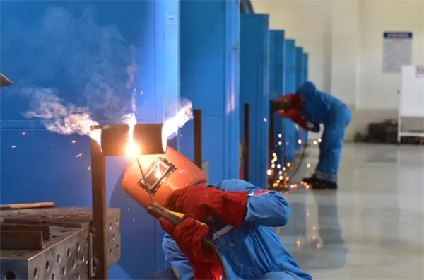 在焊工比賽現(xiàn)場,焊花飛舞、弧光閃耀,在“鋼鐵裁縫”的焊槍下,工件被嚴(yán)絲合縫地焊接成型。
