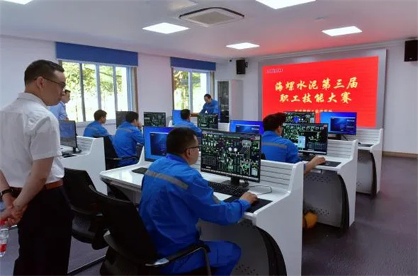在水泥操作工比賽現(xiàn)場,選手們嚴(yán)謹(jǐn)?shù)夭僮髦M系統(tǒng),逐步把各項參數(shù)調(diào)至最優(yōu)值。