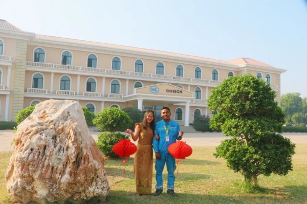 大家好!我是緬甸海螺吞林昂,這是我的妻子蘇桑達,我們都在緬甸海螺工作,這些天公司廠區(qū)內(nèi)掛燈籠、貼福字,到處洋溢著歡樂、喜慶的氛圍,像緬甸過潑水節(jié)一樣隆重。我們在緬甸海螺給大家拜年了,祝大家新春蛇年喜氣揚、工作順利事業(yè)昌!我經(jīng)常聽同事說,中國有一句俗話,“不是一家人、不進一家門”,家庭如此、公司也是如此,我相信只有公司發(fā)展好,員工才能生活的更好。作為緬甸海螺大家庭的一員,新的一年讓我們一起努力,祝福海螺未來更加美好!