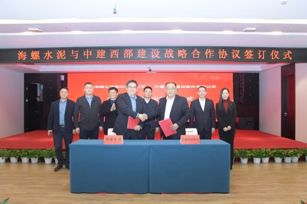 2025年2月17日,海螺水泥與中建西部建設在成都舉行戰(zhàn)略合作協(xié)議簽約儀式。海螺水泥黨委書記、總經(jīng)理李群峰與中建西部建設黨委副書記、總經(jīng)理白建軍代表雙方簽署協(xié)議。海螺水泥副總經(jīng)理、董事會秘書虞水,中建西部建設副總經(jīng)理李明杰,財務總監(jiān)、首席合規(guī)官、總法律顧問邵舉洋等出席簽約儀式。