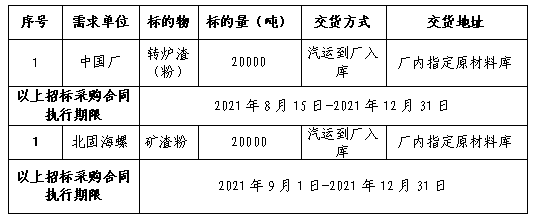1.1中國(guó)廠、北固海螺2021年下半年轉(zhuǎn)爐渣(粉)、礦渣粉采購(gòu)招標(biāo)業(yè)務(wù)招標(biāo)編號(hào):JSGY-20210704;