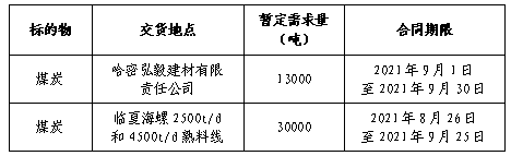 為做好哈密弘毅公司及臨夏海螺9月份煤炭采購工作,滿足生產(chǎn)需要,本著“公開、公平、公正”的原則,擬對煤炭供貨進行公開招標,現(xiàn)將招標采購信息發(fā)布如下: