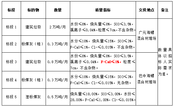 3.投標(biāo)報(bào)名單位需具有較強(qiáng)的保供能力,其中建筑垃圾投標(biāo)渠道必須為加工型企業(yè),且月供貨能力不低于0.5萬(wàn)噸;粉煤灰投標(biāo)渠道必須為直供渠道,粉煤灰(粗)月供貨能力不低于0.3萬(wàn)噸,濕粉煤灰月供貨能力不低于0.5萬(wàn)噸,同時(shí)貨源不能為四川廣旺電力公司嘉川電廠、代池壩電廠和南江煤電公司現(xiàn)階段所產(chǎn)粉煤灰。