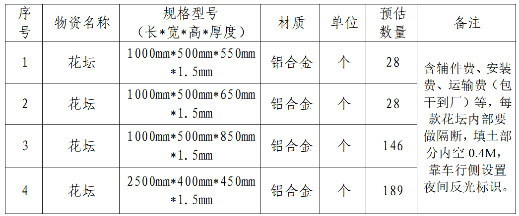 梁平海螺擬購買道路花壇一批,為進(jìn)一步體現(xiàn)公開、公平、公正、擇優(yōu)的原則,拓寬采購渠道,保證采購質(zhì)量,現(xiàn)將招標(biāo)采購信息發(fā)布如下: