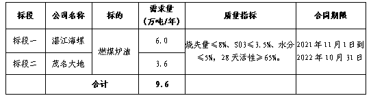 安徽海螺水泥股份有限公司廣東區(qū)域下屬的湛江海螺、茂名大地兩家公司擬聯(lián)合開展2021年-2022年燃煤爐渣公開招標工作,為進一步體現(xiàn)公平、公正、公開的原則,拓寬采購渠道,提高采購質(zhì)量,現(xiàn)將相關事宜公告如下: