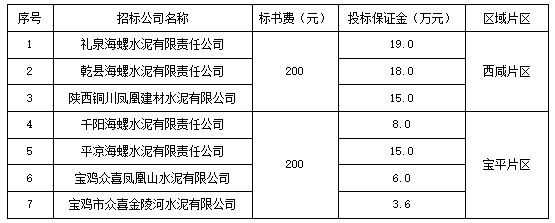 西咸片區(qū):在禮泉海螺發(fā)布的招標公告上進行報名;
