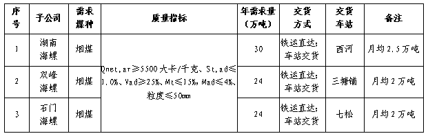 招標(biāo)人:海螺水泥湖南區(qū)域煤炭招標(biāo)小組