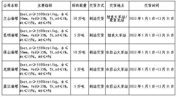 根據(jù)2022年區(qū)域內(nèi)五公司煤炭需求,為保障各公司生產(chǎn),保山海螺水泥有限責(zé)任公司擬對2022年直供煤炭采購進(jìn)行公開招標(biāo),為體現(xiàn)公平、公正、公開的原則,同時(shí)為拓寬采購渠道,降低采購成本,現(xiàn)將招標(biāo)相關(guān)事宜公告如下: