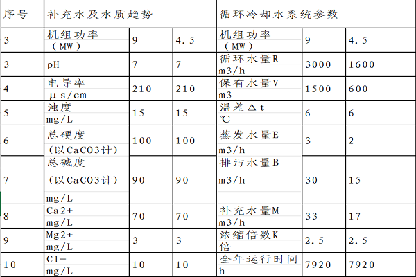 2、循環(huán)冷卻水系統(tǒng)參數和補充水及水質趨勢判定: