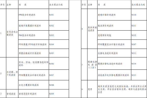 1.3使用壽命要求:窯尾耐高溫濾袋要求國(guó)產(chǎn)濾料不低于3年,進(jìn)口濾料不低于5年(要求提供保證措施),煤磨濾袋不低于2年,普通濾袋、熟料庫(kù)耐溫袋不低于1年,水泥磨濾袋不低于1.5年,投標(biāo)方在投標(biāo)時(shí)必須列明具體保證壽命。