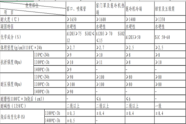3、性能保證:在需方正常操作情況下,窯運(yùn)轉(zhuǎn)率≥70%,各種澆注料按使用部位需滿足如下的最短使用周期:
