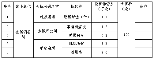 根據(jù)2021-2022年淡季平?jīng)龊B?、禮泉海螺及金陵河公司生產(chǎn)經(jīng)營(yíng)計(jì)劃,現(xiàn)對(duì)2021-2022年淡季部分電廠工業(yè)廢渣采購(gòu)組織招標(biāo),為進(jìn)一步體現(xiàn)公平、公正、公開透明的原則,此次招標(biāo)將在安徽海螺水泥股份有限公司陽(yáng)光采購(gòu)平臺(tái)公開進(jìn)行,現(xiàn)將招標(biāo)采購(gòu)信息發(fā)布如下: