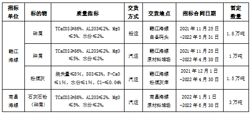 根據(jù)贛江、南昌海螺生產(chǎn)需求,計劃對碎屑、粉煤灰進行公開招標,選定中標人,為體現(xiàn)公平、公正、公開的原則,拓寬采購渠道,現(xiàn)將招標相關事宜公告如下: