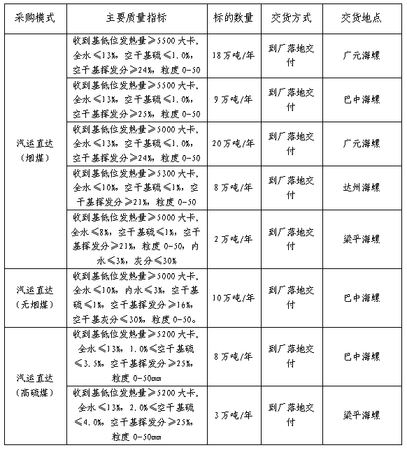 2.汽運(yùn)直達(dá)(高硫煤)定價原則:參照汽運(yùn)直達(dá)(煙煤)/鐵路直達(dá)年度長協(xié)綜合到位價格為基準(zhǔn),折算成合同標(biāo)準(zhǔn)熱值標(biāo)準(zhǔn)后,下浮**元/噸(不得低于10元/噸,由投標(biāo)單位填報)確定當(dāng)月煤炭供貨價格。