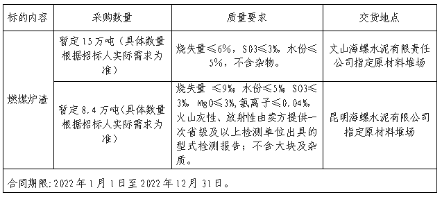 投標(biāo)單位需提供能證明具有保供能力的材料;投標(biāo)單位具備獨(dú)立法人資格,提供真實(shí)、合法有效的公司資質(zhì);具備一般納稅人資格,無(wú)不良經(jīng)營(yíng)記錄,能夠提供合規(guī)、合法、有效的增值稅專(zhuān)用發(fā)票;具有較強(qiáng)的保供能力、應(yīng)急能力,供應(yīng)文山海螺月供貨能力不得低于4000噸。供應(yīng)昆明海螺月供貨能力不得低于3500噸。
