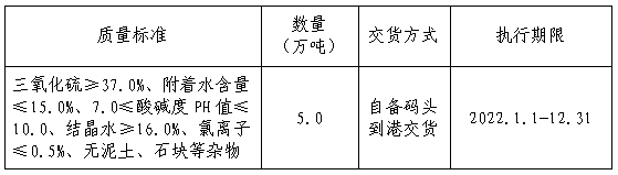 據(jù)生產(chǎn)經(jīng)營(yíng)需求,馬鞍山海螺水泥有限責(zé)任公司將對(duì)2022年2月1日-2022年12月31日合同期改性磷石膏粉開(kāi)展采購(gòu)招標(biāo)工作,為進(jìn)一步體現(xiàn)公開(kāi)、公平、公正的原則,現(xiàn)將相關(guān)事宜公告如下: