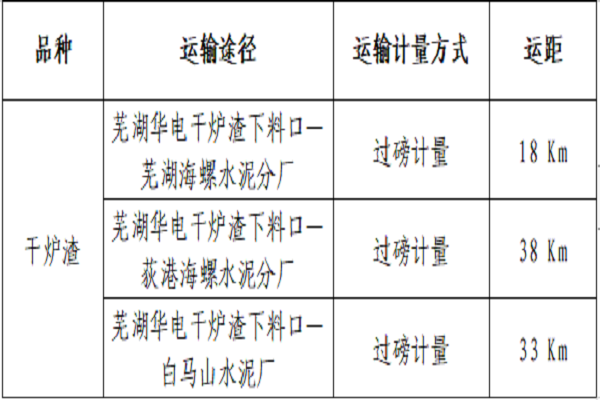 3、合同期限:粉煤灰、脫硫石膏、干爐渣合同期限為2022年5月1日至2023年4月30日(注:本次招標為預招標,若蕪湖海螺水泥有限公司未取得2022-2023年度安徽華電蕪湖發(fā)電有限公司發(fā)電副產(chǎn)品包銷權,本次招標按照流標處理)。