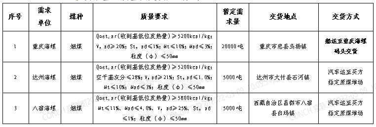 八宿海螺報價要求為一票制汽運至買方原煤堆場交貨價(含13%增值稅),買方收貨單位負(fù)責(zé)卸貨;