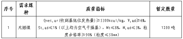 根據(jù)公司生產(chǎn)需求,公司擬對2022年6月份無煙煤進行招標(biāo),選定中標(biāo)人,為體現(xiàn)公平、公正、公開的原則,拓寬采購渠道,現(xiàn)將招標(biāo)相關(guān)事宜公告如下: