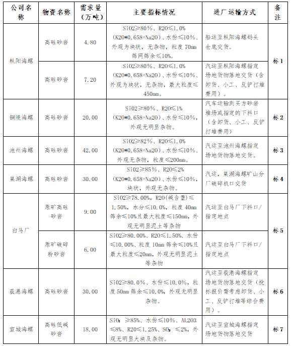4.為防止串貨,同一貨源地,單一海螺子公司只選取一家投標(biāo)單位中標(biāo)。考慮直供合作,本次招標(biāo)不接受已參加各需求公司砂巖直供礦點(diǎn)招標(biāo)(通過資質(zhì)評審的)或已在合作的直供渠道參與投標(biāo)(含貨源地為該直供渠道的流通渠道)。同時(shí)不接受貨源地為安徽佰金礦業(yè)有限公司等直供礦點(diǎn)的非直供渠道前來投標(biāo)。