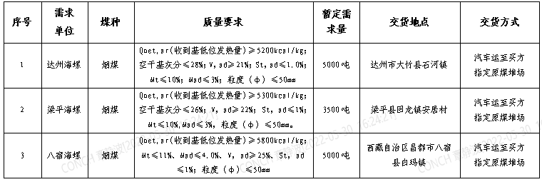 為進一步提升煤炭采購招標的公平、公正、公開透明性,根據(jù)區(qū)域2022年6月份煤炭需求,現(xiàn)組織開展煤炭采購網(wǎng)絡(luò)招標,特將招標事宜公告如下: