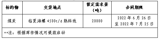 為做好我公司2022年煤炭采購(gòu)工作,滿足生產(chǎn)需要,本著“公開(kāi)、公平、公正”的原則,擬對(duì)煤炭貿(mào)易渠道供貨進(jìn)行公開(kāi)招標(biāo),現(xiàn)將招標(biāo)采購(gòu)信息發(fā)布如下: