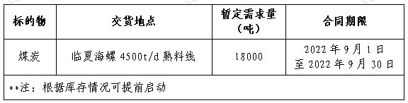 為做好我公司2022年煤炭采購工作,滿足生產(chǎn)需要,本著“公開、公平、公正”的原則,擬對(duì)煤炭貿(mào)易渠道供貨進(jìn)行公開招標(biāo),現(xiàn)將招標(biāo)采購信息發(fā)布如下: