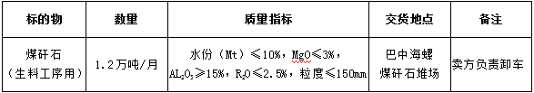 根據(jù)巴中海螺生產(chǎn)經(jīng)營需求,現(xiàn)對生料用煤矸石采購業(yè)務(wù)進(jìn)行公開招標(biāo),為體現(xiàn)公平、公正、公開、透明的原則,現(xiàn)將招標(biāo)相關(guān)事宜公告如下: