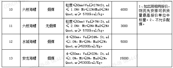 6.2022年9月21日至2022年10月20日合同期內(nèi),若中標(biāo)單位在2022年10月6日24時(shí)前供貨量(銷發(fā)系統(tǒng)進(jìn)廠數(shù)量)小于合同約定量的30%的中標(biāo)單位,不予以參與海螺水泥貴州區(qū)域2022年10月21日至2022年11月20日煤炭招標(biāo)(僅買(mǎi)方原因或不可抗力因素除外,鐵路在途和在站煤炭不給予納入供貨量,僅以進(jìn)廠數(shù)量為準(zhǔn)),并取消在貴州區(qū)域所有海螺6個(gè)月內(nèi)的投標(biāo)資格。
