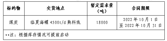 為做好我公司2022年煤炭采購工作,滿足生產(chǎn)需要,本著“公開、公平、公正”的原則,擬對煤炭貿(mào)易渠道供貨進(jìn)行公開招標(biāo),現(xiàn)將招標(biāo)采購信息發(fā)布如下: