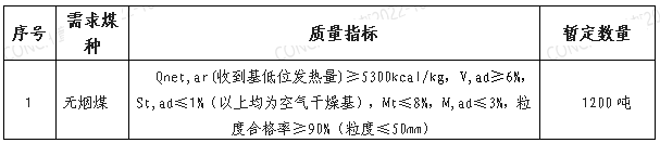 根據(jù)公司生產(chǎn)需求,公司擬對(duì)2022年11月份無(wú)煙煤進(jìn)行招標(biāo),選定中標(biāo)人,為體現(xiàn)公平、公正、公開的原則,拓寬采購(gòu)渠道,現(xiàn)將招標(biāo)相關(guān)事宜公告如下: