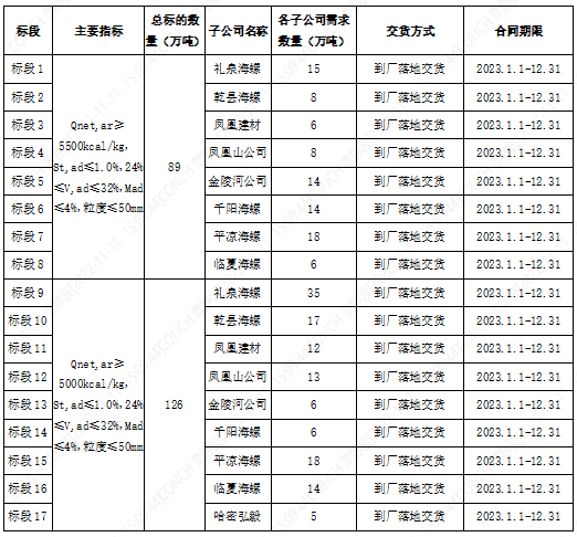 根據(jù)2023年陜甘區(qū)域各子公司煤炭需求,為保障各公司生產(chǎn),擬對(duì)2023年煤炭采購進(jìn)行公開招標(biāo),現(xiàn)將招標(biāo)相關(guān)事宜公告如下: