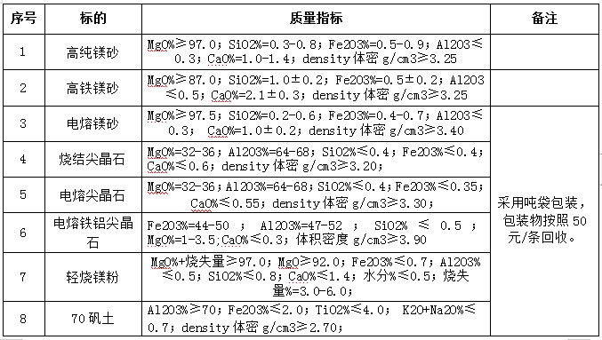 注:上述鎂質(zhì)原材料必須為天然礦石制品,不得使用浮選等任何提純工藝生產(chǎn)的輕燒粉作為原材料。