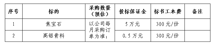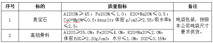 1.1招標(biāo)名稱(chēng):安徽海螺暹羅耐火材料有限公司2024年焦寶石和高鋁骨料招標(biāo)。