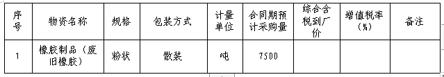 1.標(biāo)的物:橡膠制品(廢舊橡膠)。
