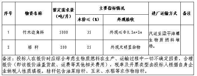 2.本次招標(biāo)共設(shè)置竹木邊角料、秸稈2個標(biāo)段,開標(biāo)時分標(biāo)段評標(biāo),采取分不同供貨時間綜合到廠不含稅總額最低為中標(biāo)原則,按投標(biāo)總額從低到高的順序選擇預(yù)中標(biāo)單位,直至排滿標(biāo)的需求量為止。
