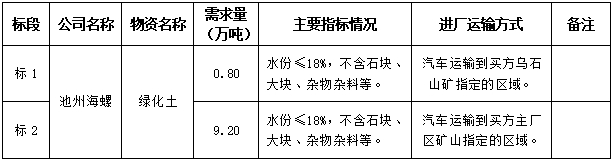 根據(jù)我公司生產(chǎn)經(jīng)營及工程建設(shè)需要,現(xiàn)擬開展2024年度池州海螺綠化土采購招標,為規(guī)范物資采購行為,嚴格遵循公平、公正、公開的原則,現(xiàn)將招標采購信息發(fā)布如下: