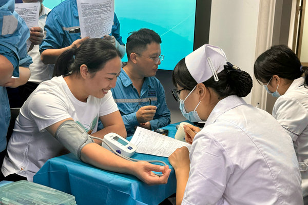 “別緊張,我會(huì)溫柔一點(diǎn)的,怕針頭的話就扭過(guò)頭去,你打算獻(xiàn)多少血呀?”“AB型是血站急需血型的話我可以多獻(xiàn)一點(diǎn)?!薄岸喃I(xiàn)可不行,一次最多只能獻(xiàn)血400毫升哦?!薄澳俏耀I(xiàn)400毫升?!贬t(yī)護(hù)人員和公司員工們的對(duì)話,打破了原本有些緊張的氛圍,在場(chǎng)的人員都莞爾一笑。