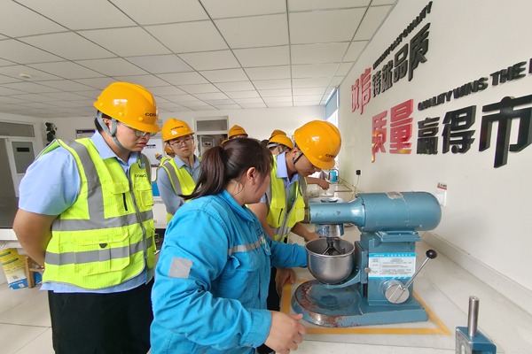 活動(dòng)最后,中建西部公司一行參觀了中控樓中央控制室,了解熟料、水泥生產(chǎn)工藝流程。參觀過程中,向客人介紹了水泥質(zhì)量過程控制主要措施,并對(duì)提出的疑問進(jìn)行解答,同時(shí)與中建西部公司劉總及骨干人員就生產(chǎn)工藝、質(zhì)量管理工作進(jìn)行相互探討交流,全方位了解了海螺水泥生產(chǎn)原燃材料、生產(chǎn)工藝、質(zhì)量控制、指標(biāo)管控及銷售和售后服務(wù)流程方面的內(nèi)容,并開展了水泥標(biāo)準(zhǔn)稠度技能比拼,雙方在熱烈友好、積極融合的氣氛下結(jié)束了此次交流活動(dòng)。