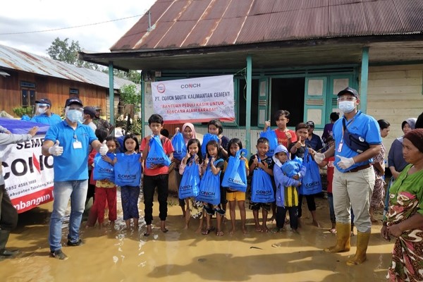 2021年1月28日,南加海螺為當?shù)厥芎闉?zāi)影響村民送去慰問品