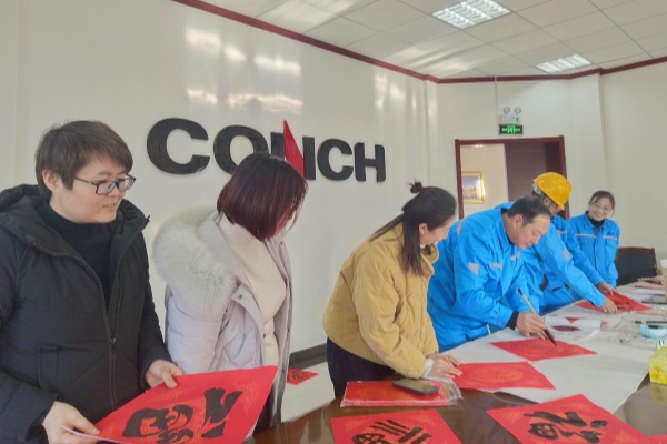 在制造燒成、礦山汽修廠房、水泥維修值班室、辦公樓會(huì)議室,許多員工翻看公司準(zhǔn)備的對(duì)聯(lián)書(shū)、在手機(jī)上查找自己喜歡的對(duì)聯(lián),早早排起了長(zhǎng)隊(duì)。