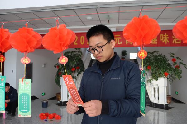 猜燈謎活動現(xiàn)場,元宵歌謠喜氣洋洋,火紅燈籠高高掛起,燈謎彩紙隨風(fēng)輕舞。燈謎內(nèi)容既有傳統(tǒng)字謎、成語謎,也有結(jié)合當(dāng)下熱點的新穎謎題,考驗智慧又妙趣橫生,引得大家紛紛駐足思考。人群中笑臉盈盈,此起彼伏的聲音:“今天我猜對了三個燈謎,并獲得了小禮品,我非常地開心,并且還學(xué)到了新的知識,非常的棒!”“今兒的活動可不賴,我覺得很有趣,也怪熱鬧,元宵嘛其實就是團圓,猜猜燈謎可喜慶,祝福大家健康快樂、吉祥如意?!被顒蝇F(xiàn)場 ,員工們有的盯著謎題凝神思考,有的為自己猜中謎底露出喜悅的表情,興奮地到兌獎處領(lǐng)獎品,陣陣笑聲、歡呼聲不時傳出……